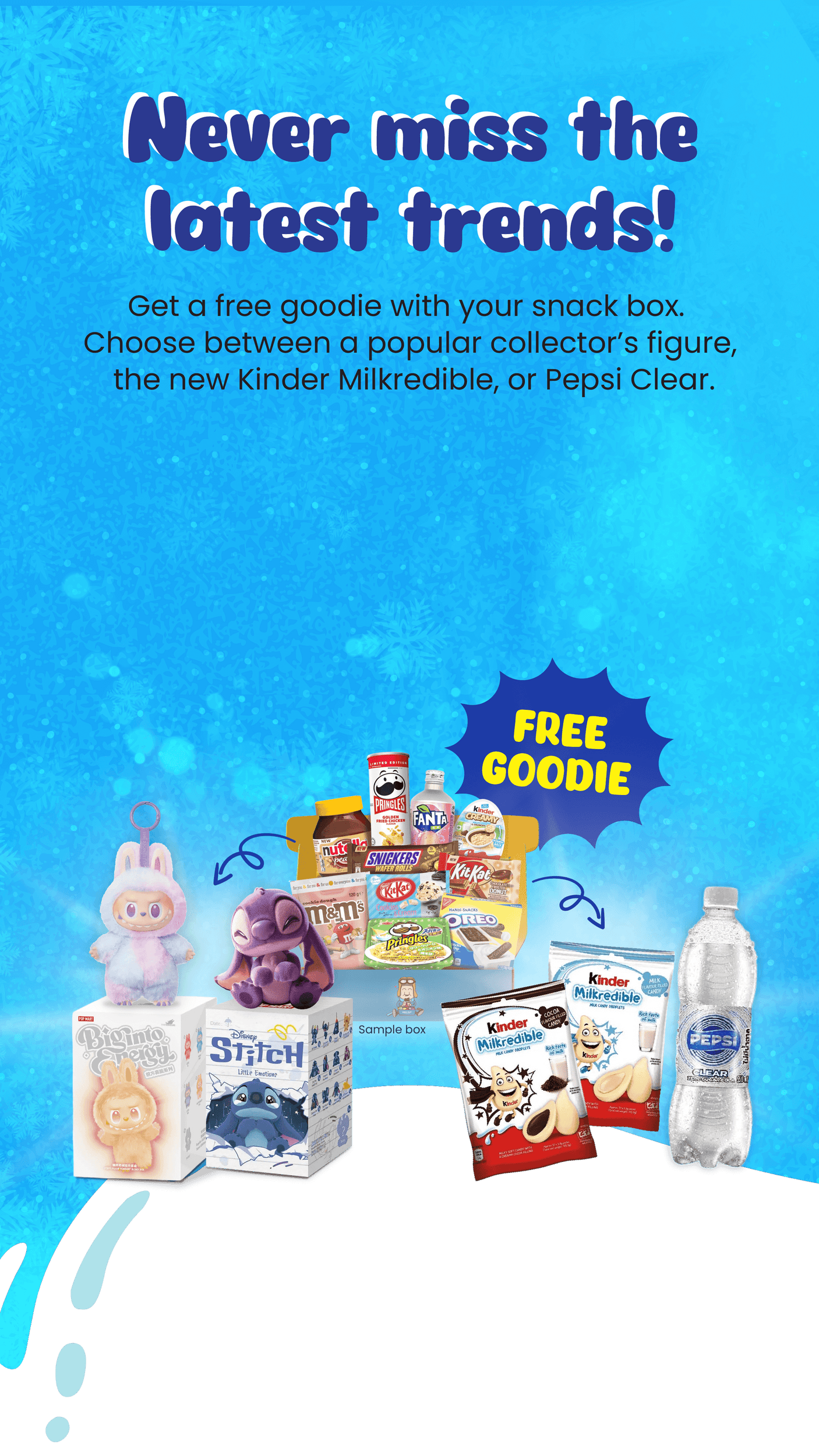 Získejte své měsíční svačiny z celého světa. Každý měsíc nová země, nové občerstvení a nové chutné dobrodružství exkluzivních produktů, které v místním obchodě tak snadno nenajdete.