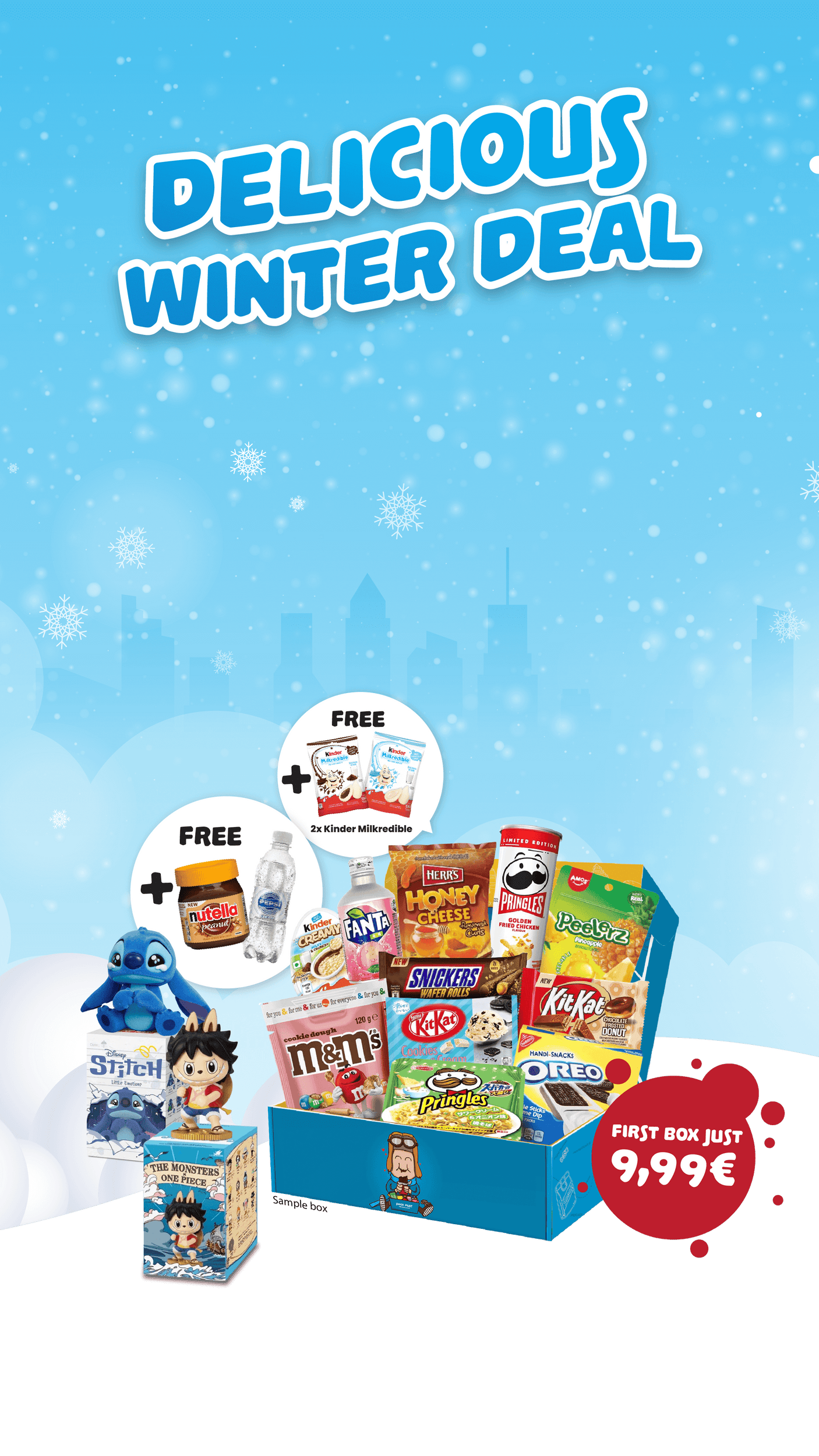 Zdobądź comiesięczne przekąski z całego świata. Co miesiąc nowy kraj, nowe przekąski i nowa smaczna przygoda ekskluzywnych produktów, których nie można łatwo znaleźć w lokalnym sklepie.